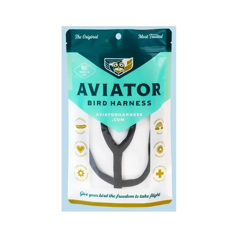 Deze Aviator tuigjes zijn van Amerikaanse kwaliteit, zijn zorgvuldig met de hand geproduceerd en zijn van lichtgewicht, waardoor de vogel niet geremd wordt in zijn bewegingsvrijheid. De Aviator tuigjes zijn ook nog verstelbaar in maat met het gebruiksvriendelijke aanschuifsysteem waardoor de tuigjes vrijwel altijd een perfecte pasvorm hebben voor de vogel. Aan dit harness zitten geen gevaarlijke slotjes of schakels van metaal of plastic. Ook is het een escape-proof tuigje. In principe is het niet mogelijk als het tuigje goed op maat is om te ontsnappen uit het tuigje zonder onze hulp.