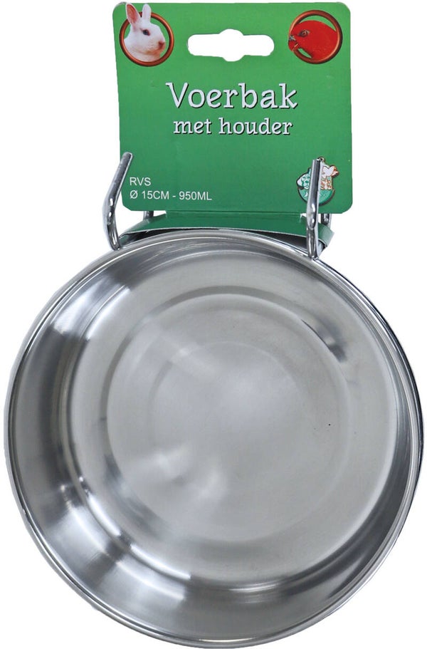 RVS voerbak met houder universeel, Ø 15 cm - 950 ml.